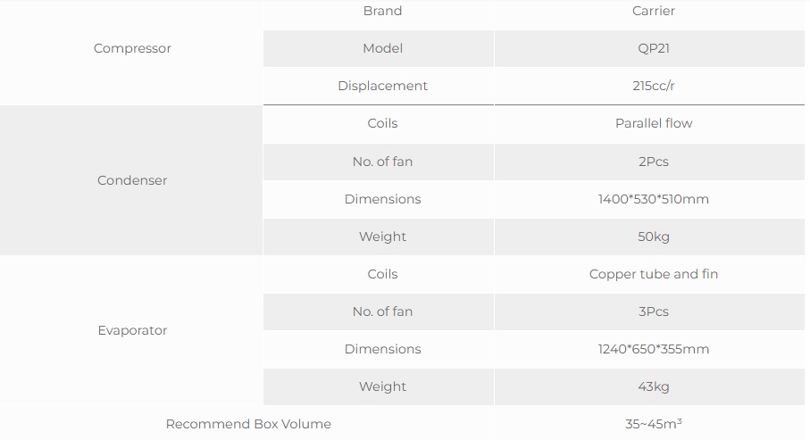 1. Được điều khiển bằng động cơ xe, Tủ đông lạnh xe tải HUABON THERMO HT-750 được thiết kế cho xe tải đông lạnh thùng 35 ~ 45m³, để bảo quản thực phẩm lạnh và đông lạnh, y tế, trái cây, rau, đá viên, hải sản, v.v.